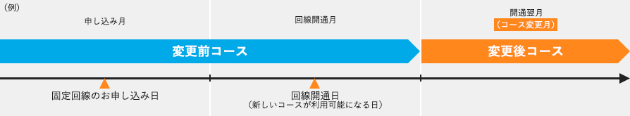 - お申し込みいただいた回線が開通された(新しいコースが利用可能になった)月の翌月にご利用のコースが新しいコースに変更されます。