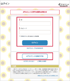 「dアカウントを発行する」ボタンよりdアカウントを取得してお申し込みください。