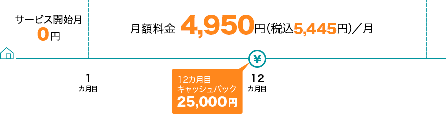 | 1カ月目~24カ月目まで*2 | 4,950円/月 (税込5,445円/月) |