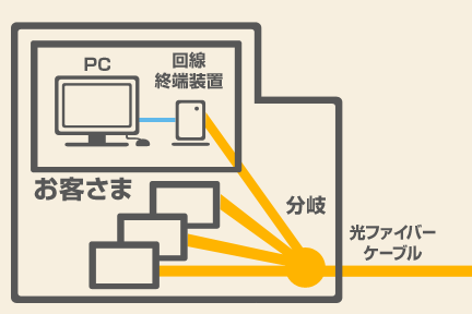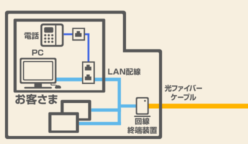 集合型回線終端装置からお客さま宅までをLANケーブルで接続する方式。建物内のLANケーブル・配管については、既存のものを利用するか、管理組合・オーナさまにご用意いただきます。